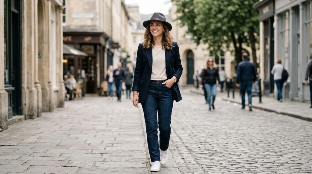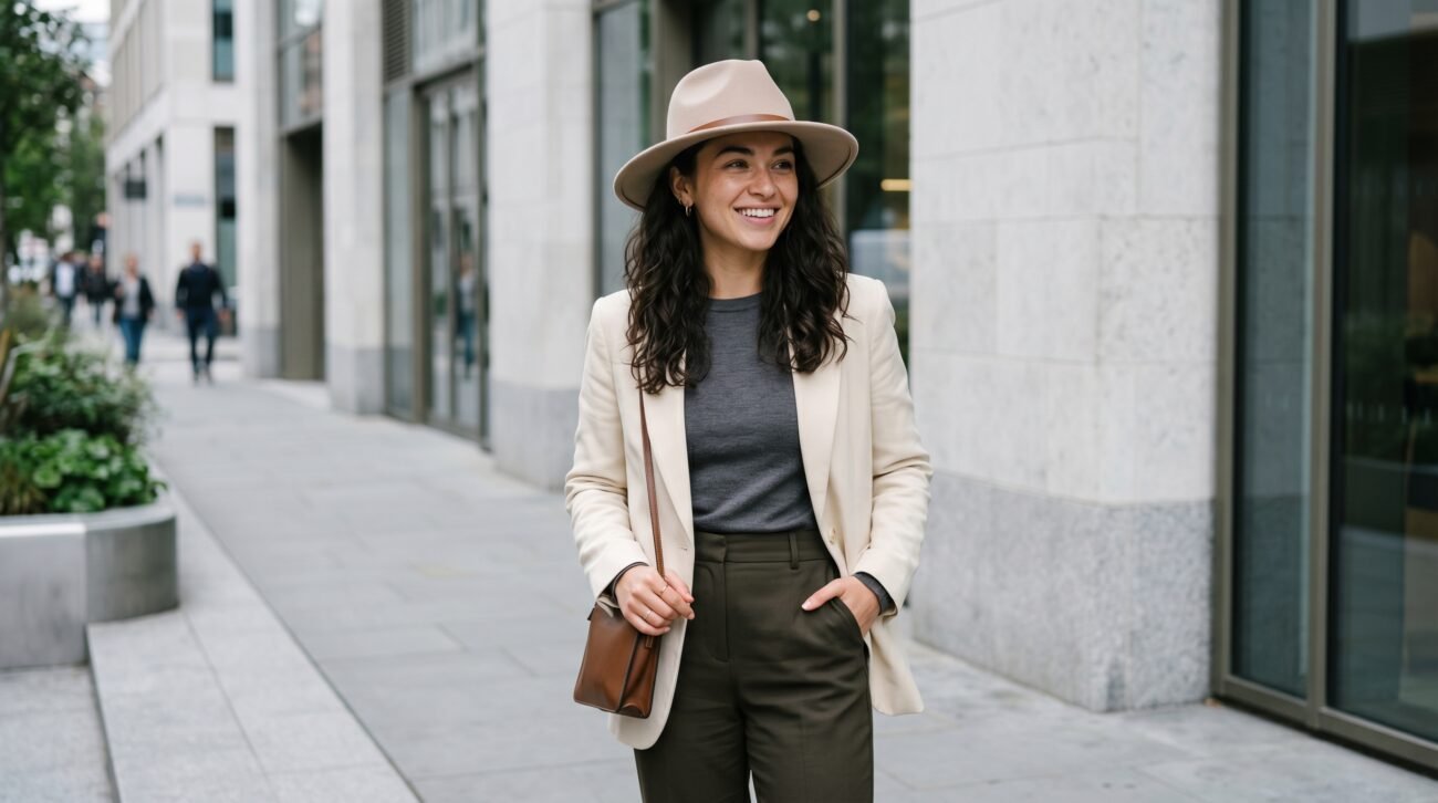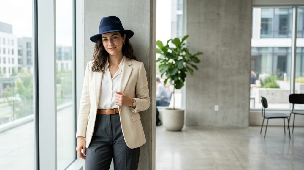 A lot of people in their late twenties and thirties avoid hats with nicer outfits because they think it looks too casual but that is really not true anymore. A clean Blade Hat sitting over a blazer and plain tee is actually one of the easiest combinations you can put together on a regular morning.