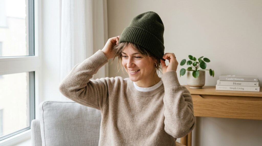 Keeping your hat unnecessarily straight in front of your head makes you look like you’re just caught wondering outside. A little shift on one side totally changes the shape of the face and makes the whole outfit look more deliberate without any extra effort.