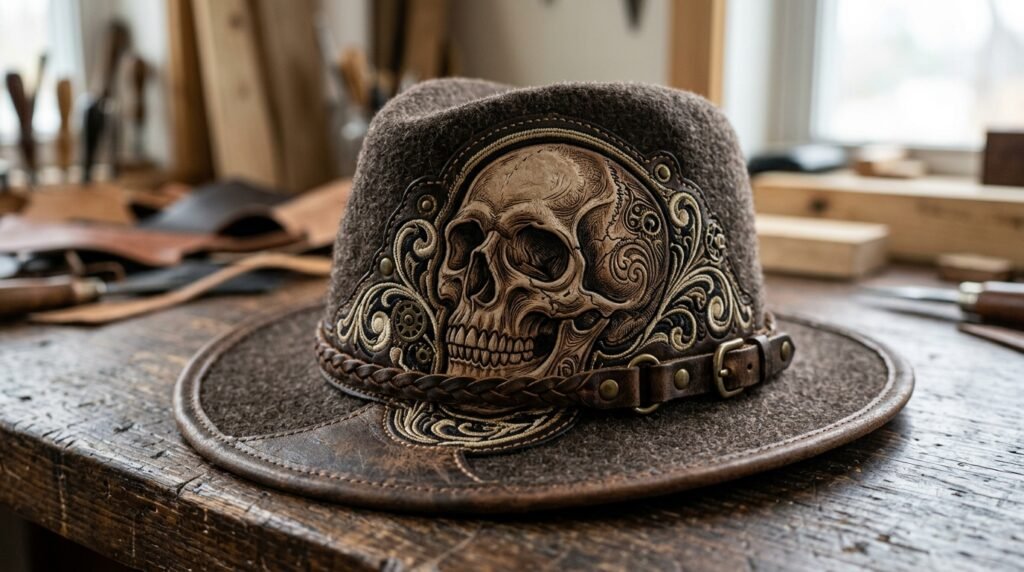 Mass production killed uniqueness in almost every category of fashion but handmade hat art never had that problem. Every burn mark, every rivet and every brushstroke is a decision made once for that specific piece and never repeated exactly the same way again.