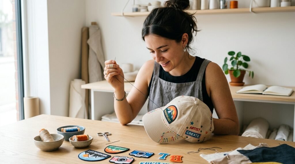 Some artists lean into rough, handcrafted looks – this vibe sparked a wave of do-it-yourself-style hats. Fastened chains, stitched patches, threadwork, even brushstroke markings show up often, making every piece feel distinct.