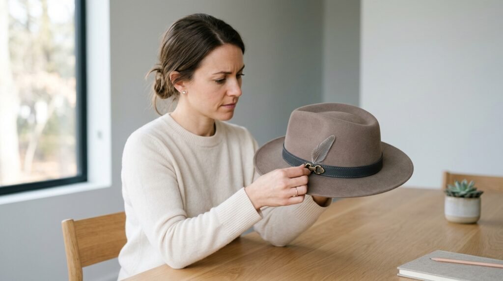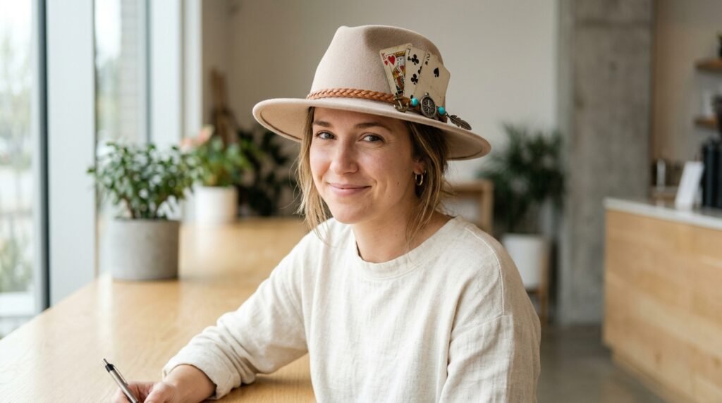 Tucking tarot cards, playing cards or small charms into the hat band is honestly one of the easiest ways to add serious personality without doing anything permanent or complicated at all. The band holds them naturally and they can be swapped out whenever you want a completely different look.