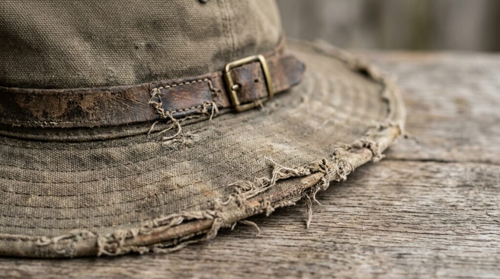 A beaten up hat that looked like it had been through something became a rock signature. A pristine hat said nothing. A distressed one said everything.