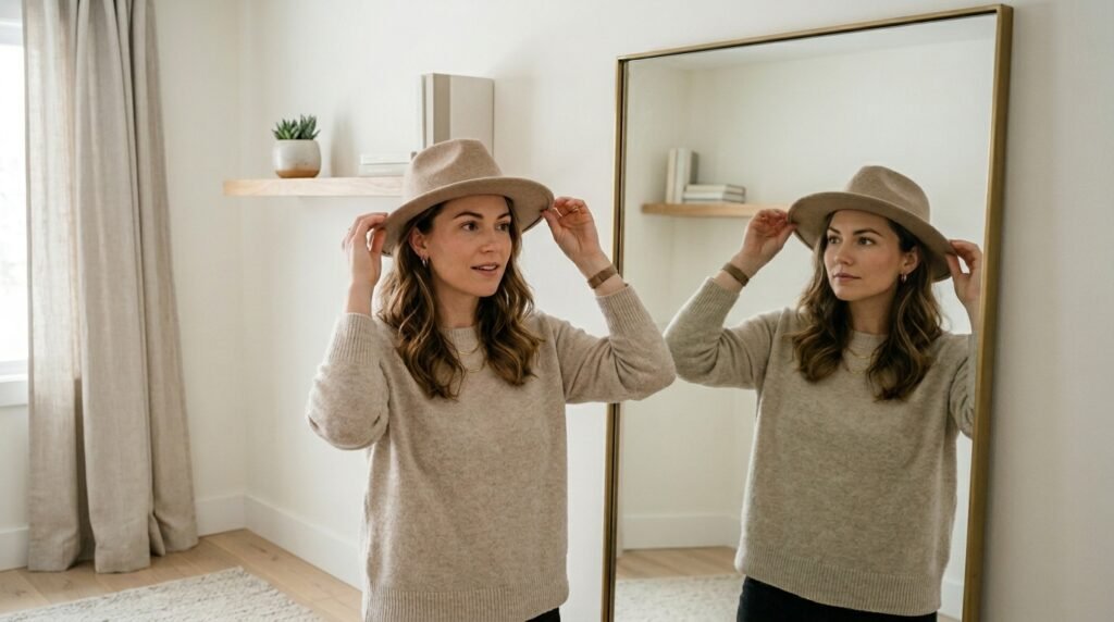 Putting a bold hat on for the very first time in public is setting yourself up to feel awkward. Wear it around the house for a few days first and that natural ease starts building on its own before you ever step outside.