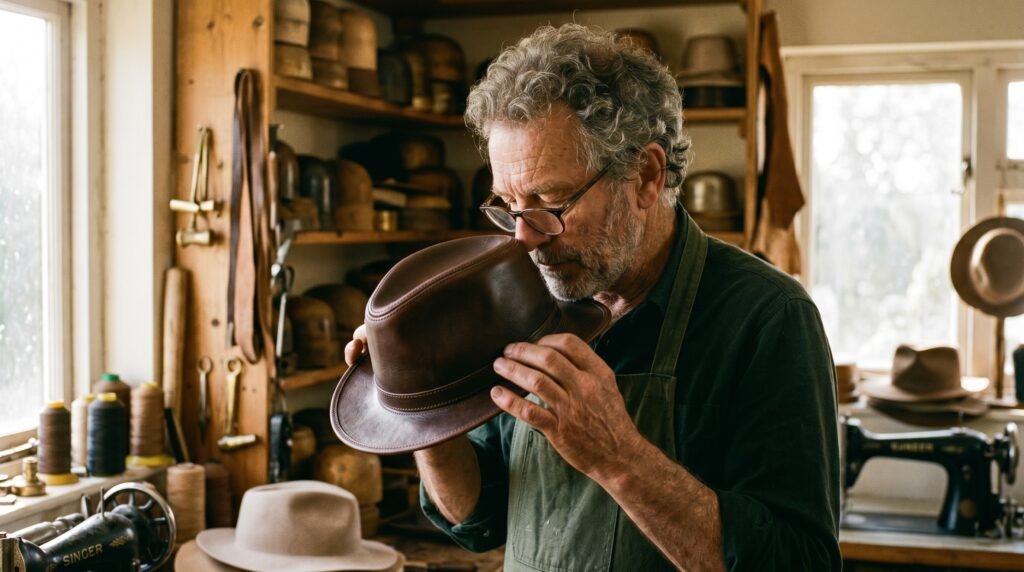 This one sounds super strange but people who handle a lot of hats will honestly tell you that real properly worked leather has a smell that immediately communicates quality before anything else registers. Synthetic materials simply cannot fake it no matter how good they look.