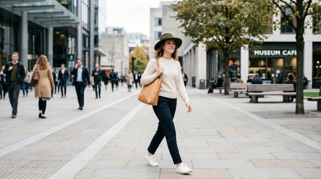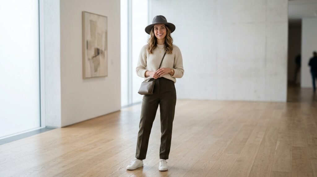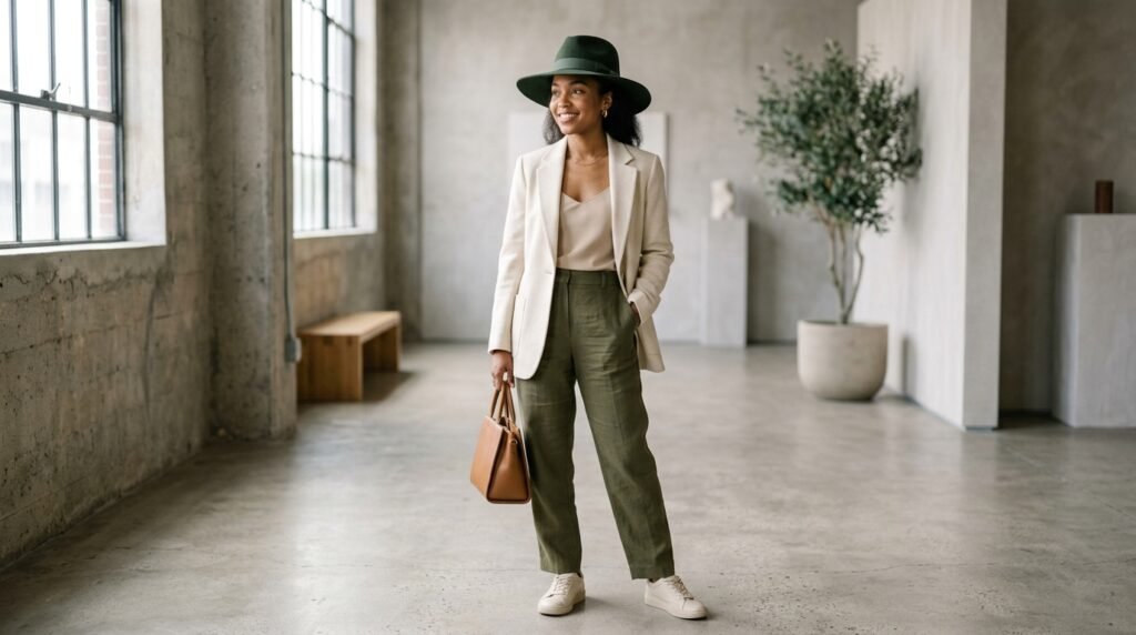 A statement hat does not need to match everything but it needs to connect to something already in the outfit. One shared color or tone ties the whole look together without making it feel too planned.