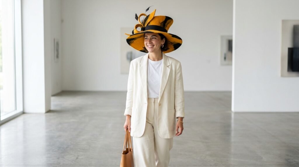 A dramatic wide brim works beautifully at an outdoor event and looks completely out of place in a casual coffee shop. Reading the room is part of wearing a statement hat well.