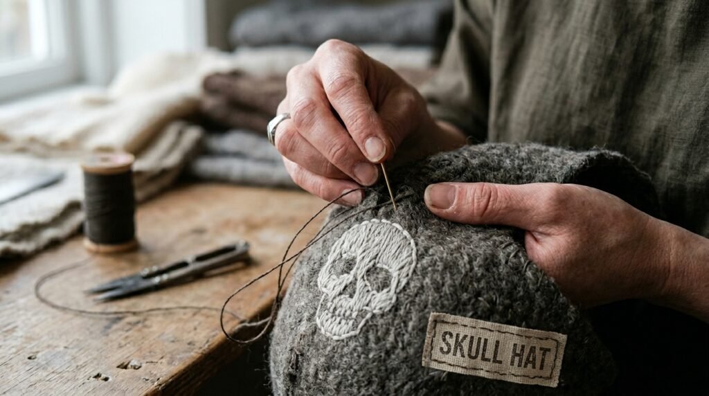 Run your fingers along the seams of a handcrafted skull hat and it feels completely different. The stitching is careful and consistent in a way that machines built for speed just do not produce.