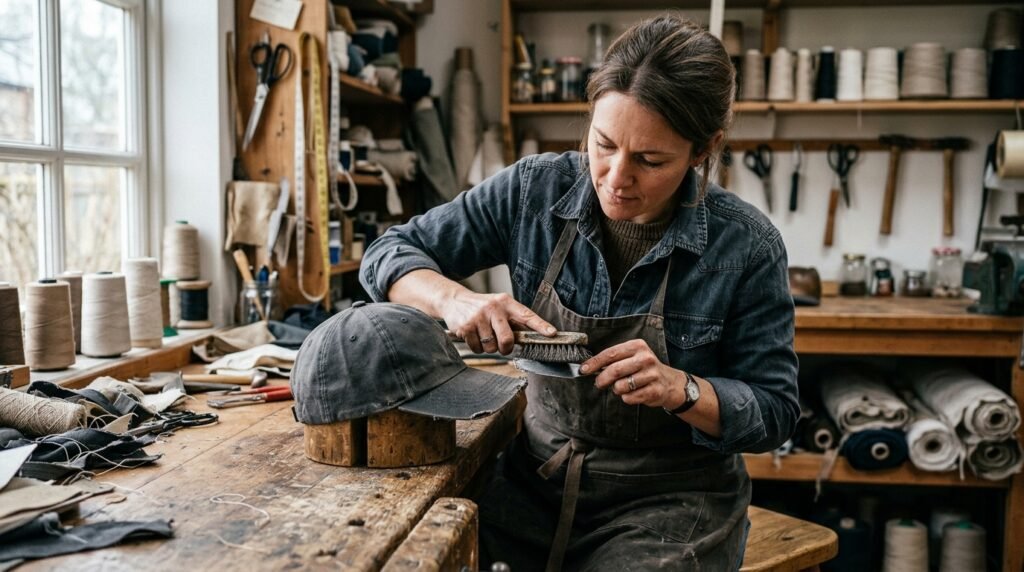 Someone making a hat by hand has a reputation attached to every piece they put out. That accountability is built into the process in a way that a factory line structurally cannot replicate no matter how advanced the machinery gets.