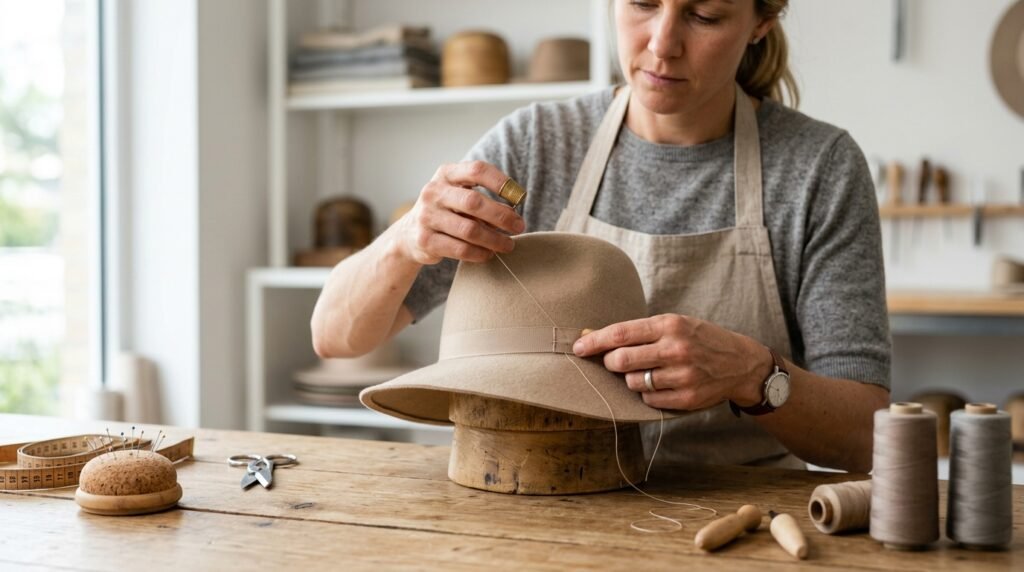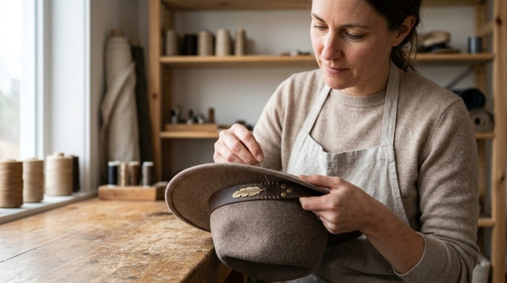 Hand shaping gives each hat a life machines just miss. Crafted one at a time, they carry small differences only fingers can make.